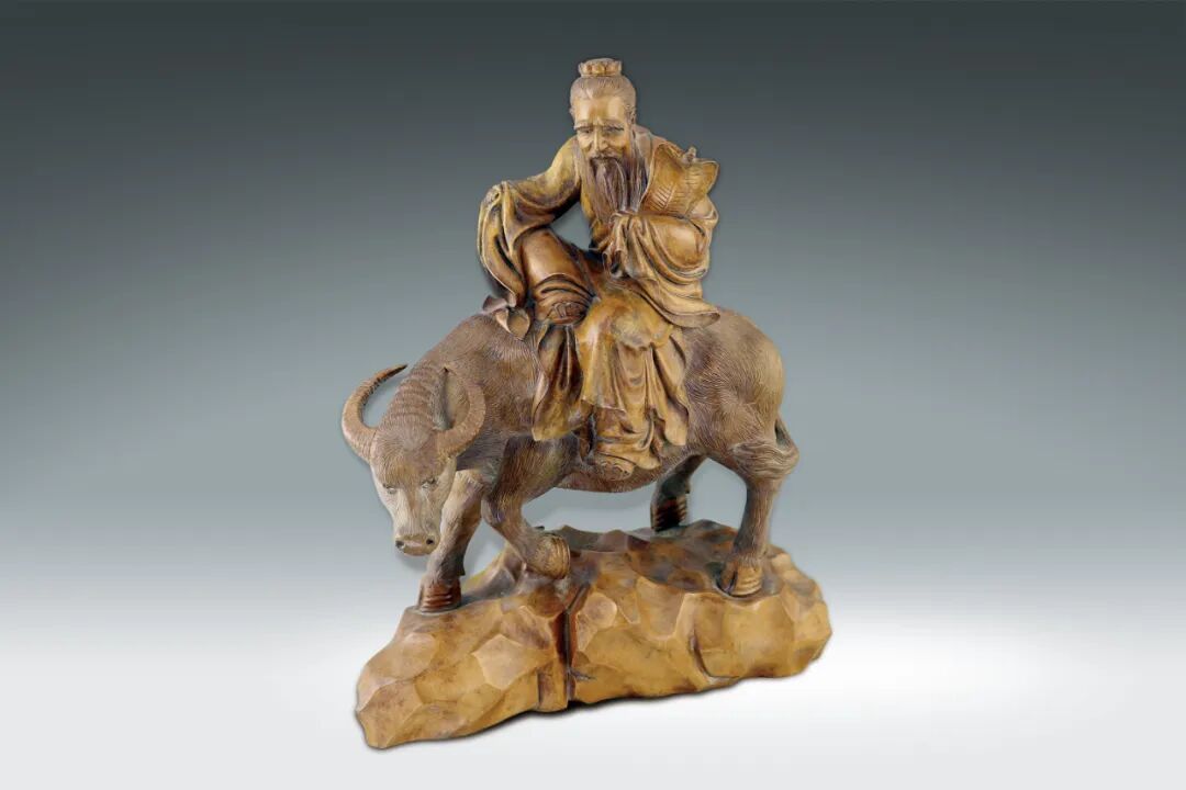 154 民國 黃楊木雕老子出關擺件