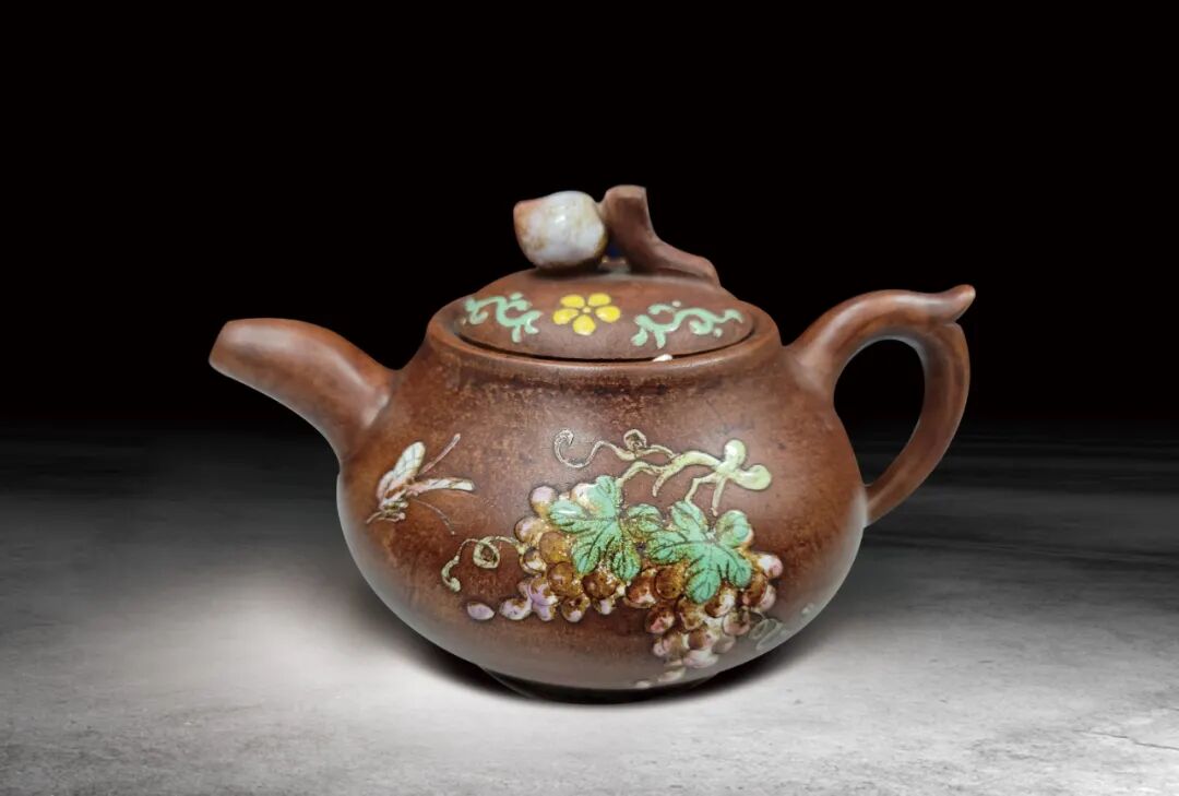 187 清 紫砂加彩花蝶紋茶壺
