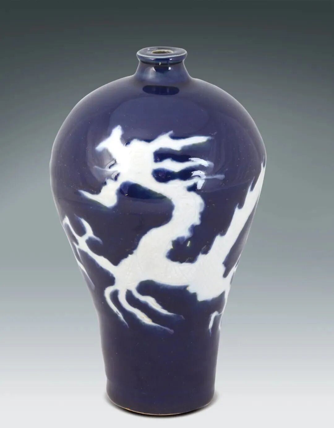 12 明 藍釉白龍紋梅瓶