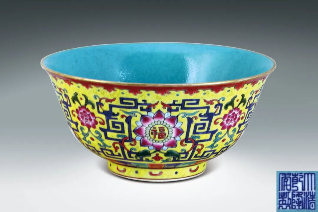 37 清 黃釉底琺瑯彩繪福字碗