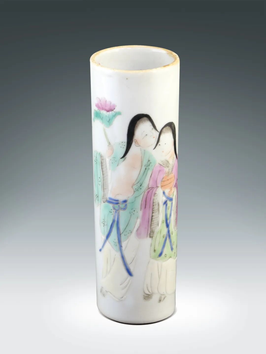 11 清 粉彩仕女筆筒