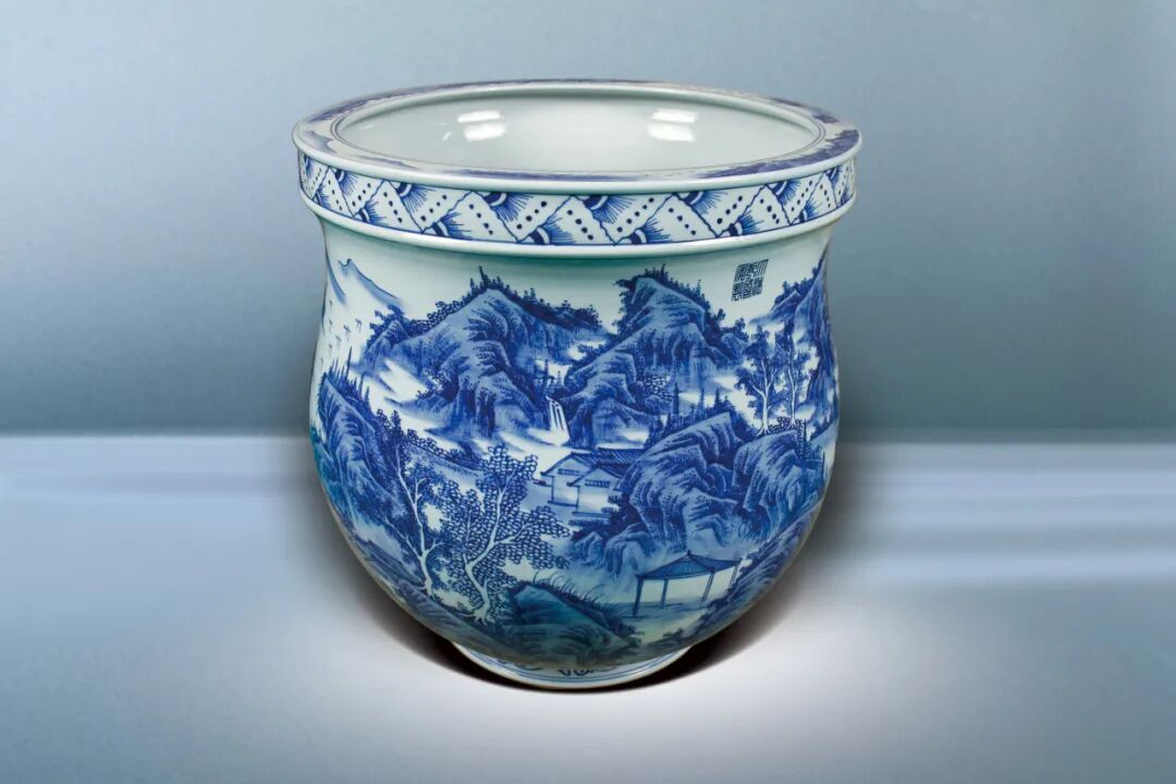 24 青花山水畫缸