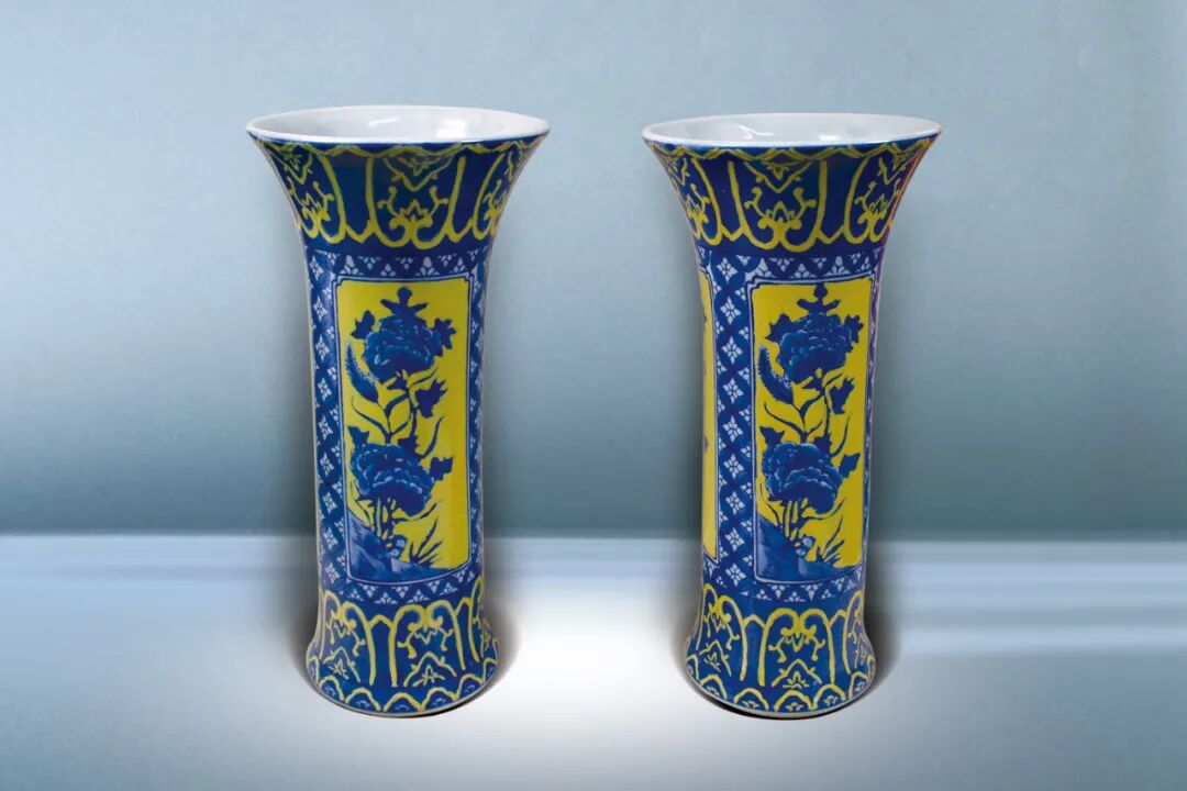 18 黃釉青花花觚一對