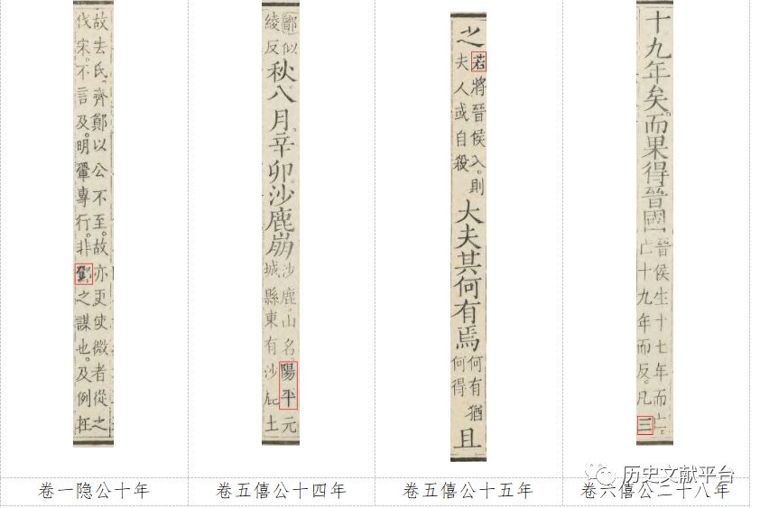 国图《春秋》清末藏于临清徐坊处,其后各册分散,为周叔弢自庚午(1930年)春至丁亥(1947年)正月陆续收得,后捐北京图书馆(今中国国家图书馆),《中国版刻图录》收录,《中华再造善本》影印。各卷末多有相台木记。检藏印有“玄同子邵桂子一之父章”、“睦邵桂子”白方、“桂子”白方、“邵伯子”白方、“寿乐老人章”白方、“云间寿乐行窝”朱方、“寿乐行窝”朱方、“寿乐”、“寿乐堂”亚形印、“玄同/邵子”连珠印、“玄同”椭圆印、“玄同”鼎炉形印、“玄之又玄”朱方、“守吾玄”朱长方、“天光云影”朱方、“甲戌/辛未己未/甲子”朱文亚形印(以上邵桂子印)、“徐健菴”白方、“乾学”朱方(以上徐乾学印)、“浦祺之印”白方、“浦氏扬烈”白方、“浦玉田藏书记”朱白文相间方印、“浦伯子”朱文椭圆印、“留与轩浦氏珍藏”朱方(以上浦祺(1733~1795)印)、“袁印廷梼”朱方、“五砚主人”朱方、“五砚楼”朱长方(以上袁廷梼(1764—1810)印)、“严杰借读”白方(以上严杰(1764-1843)印)、“定府珍藏”朱方、“曾在定邸行有恒堂”朱方(以上载铨(1794-1854)印)、“古逸生”白方(印主不明)。
