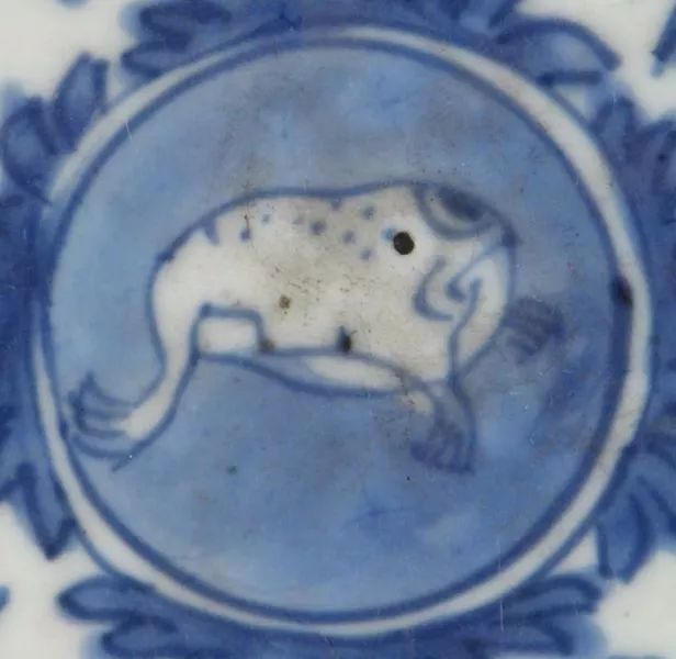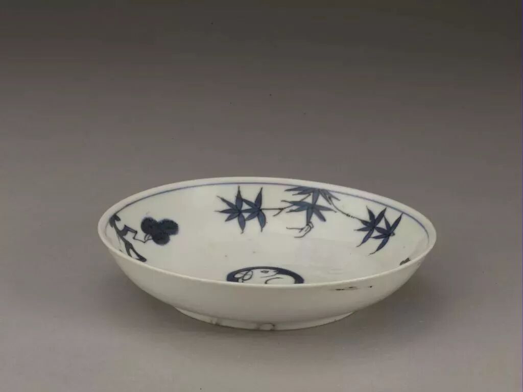 杜甫《月》诗有“入河蟾不没,捣药兔长生”句,描写中秋月色,此盘所绘玉兔形态正合诗意,或有祝人长寿、祈求团圆的美好寓意。将兔纹与松、竹、梅“岁寒三友”同绘一器之上,更为这件晚明时期的民窑小盘,增添了些许文雅趣味。![]()