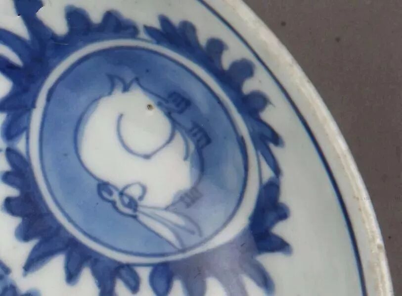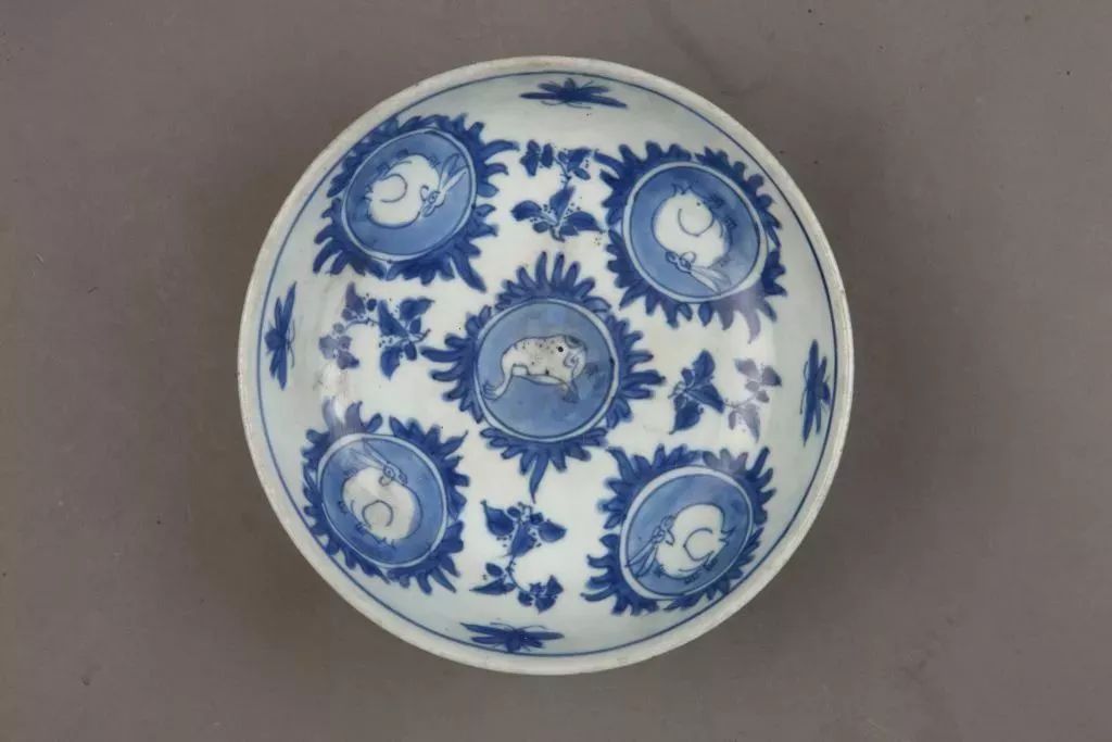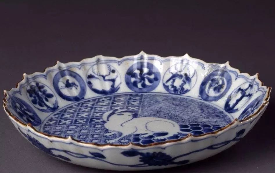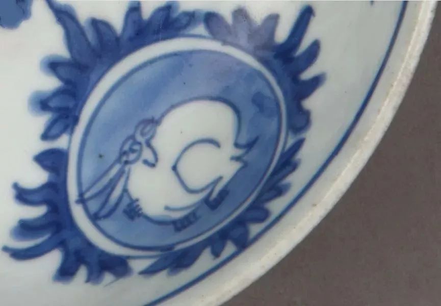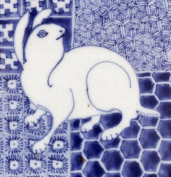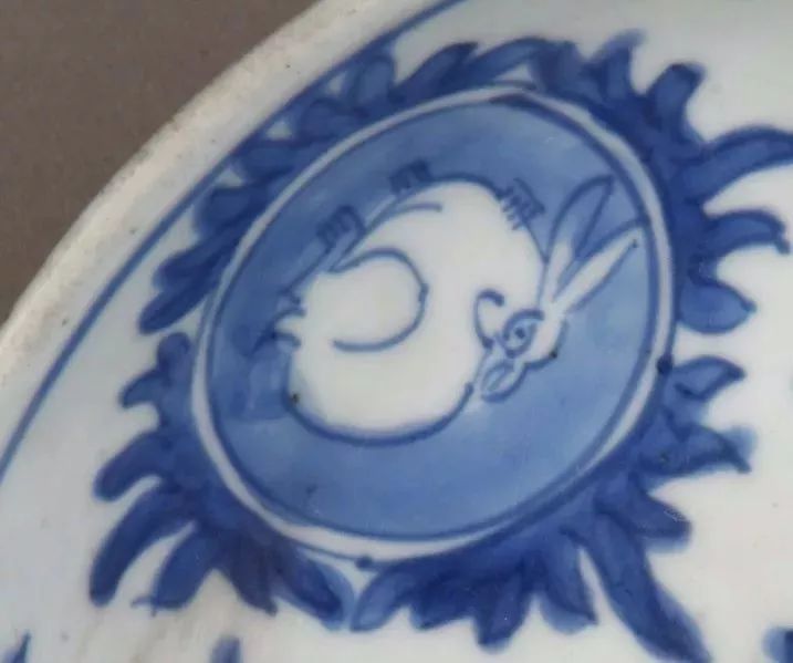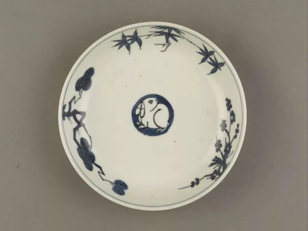 明末清初以来,民窑中常见此类以玉兔为题材的日用器,多以盘、碗、杯等为主,寓意“玉兔思乡”。![]()