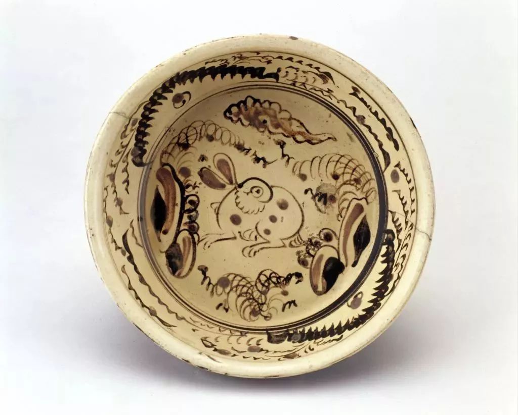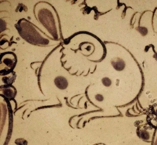 此件器物的兔纹装饰图案,在元、明以来的磁州窑器物中颇为常见。可以想见,玉兔形象必然深受当时民众的欢迎和喜爱。![]()