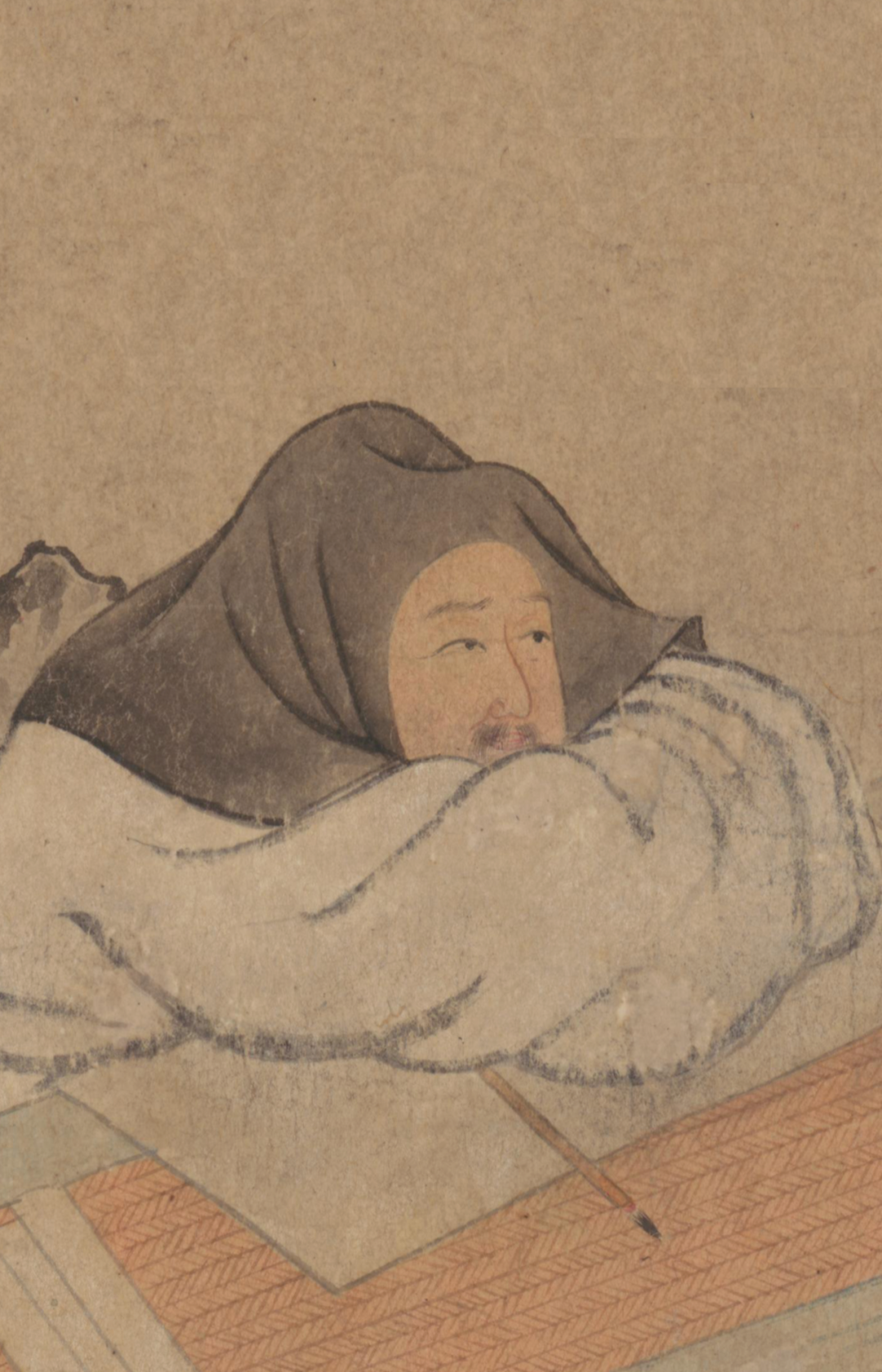 林逋头戴幅巾,缩着背趴伏在石案上,下巴塞进肥大的袖袍里,耐着寒冷,对着丈外铜瓶里的梅枝发呆。
