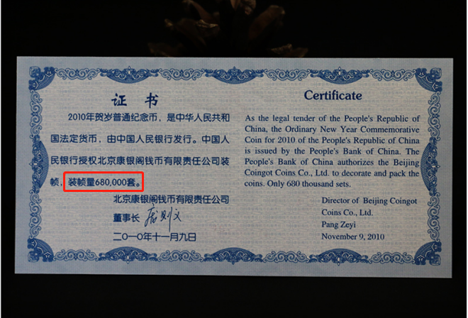 2010年虎年纪念币发行量有3000万枚,而康银阁官方装帧的只有68万套,每套均含有鉴定证书!![]()