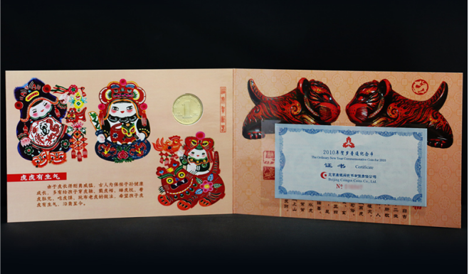 今天小钱带来的2010年虎年卡币是由康银阁装帧,发行量仅有68万套。再加上随着时间的流逝,大部分生肖币已经沉淀在民间,市场上能见到的真是不多了。