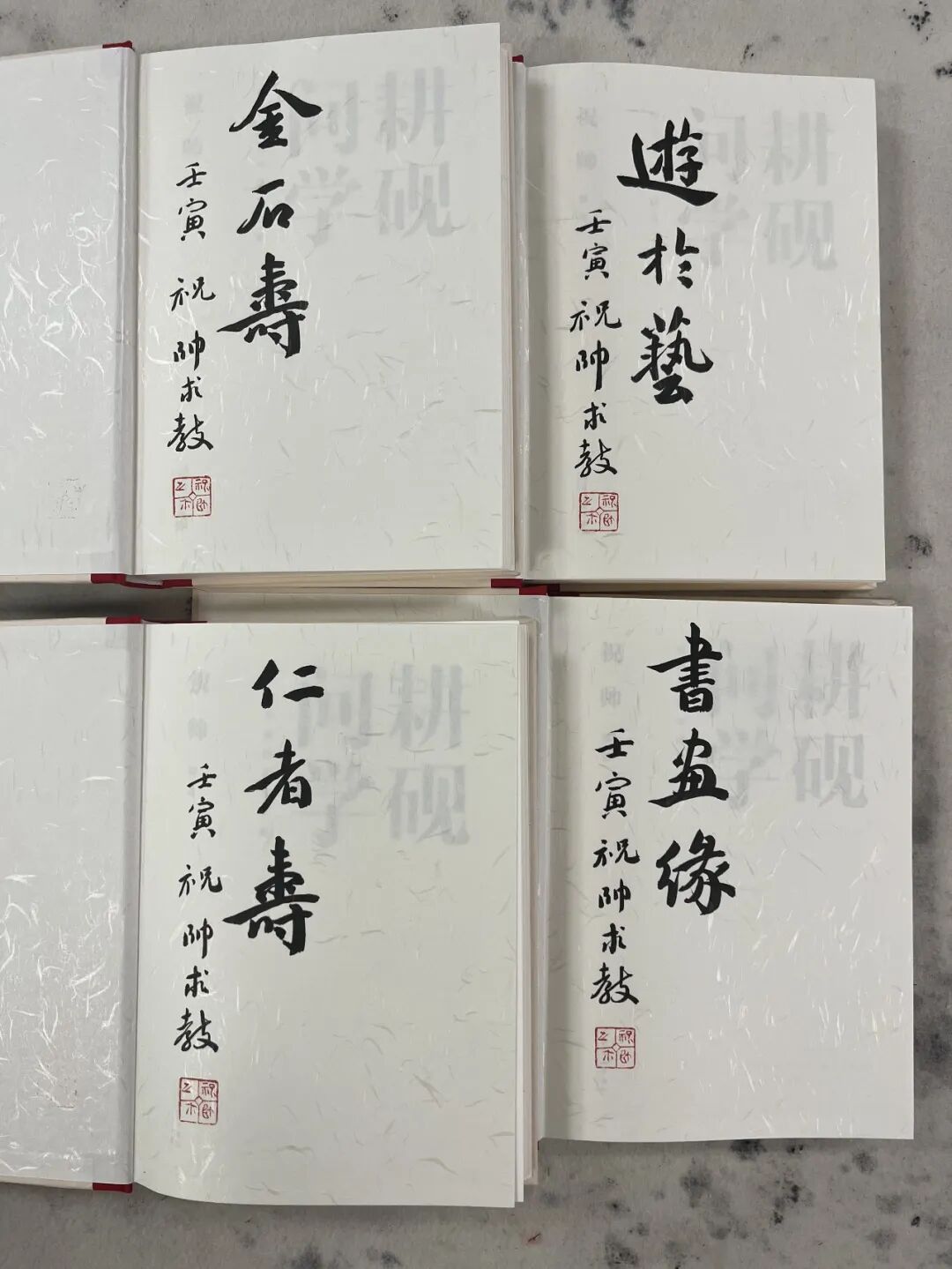 直播期间将为大家带来杨军老师专著《北宋汴京书法文化研究》、《跬步集》的毛笔签名钤印版;祝帅老师专著《耕砚问学》扉页题写吉语版、《从西学东渐到书学转型》毛笔签名钤印版。