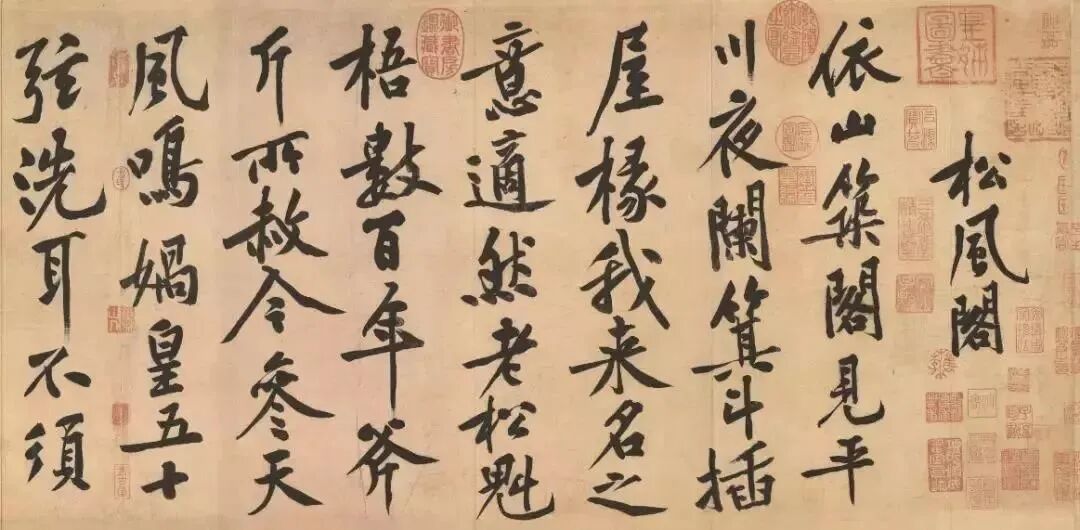 赵孟頫喜喝酒,写下不少精彩篇章。比如,赵孟頫《太湖石赞》是与好友相聚时,一时酒酣的乘兴之作。纸质莹润光滑,信手写来,“神融笔畅”,滂沛悦然。作为酒后佳作,在风格上多得颜真卿、米芾二家笔意,这在赵氏的书作中,甚至在整个唐宋后书法史上,都是极少见的。款署:“湖州观堂与受益外郎饮酒一杯之余,便觉醉意横生。戏书此卷,为他日一笑之资。孟頫。”
