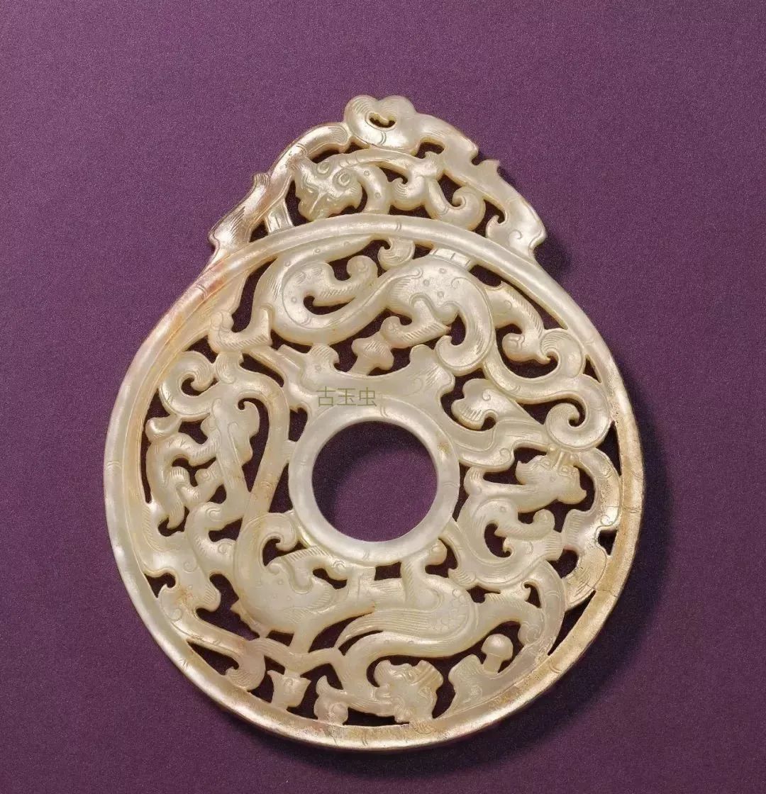 东汉 白玉乳丁螭虎瑞兽纹出廓璧(213万)