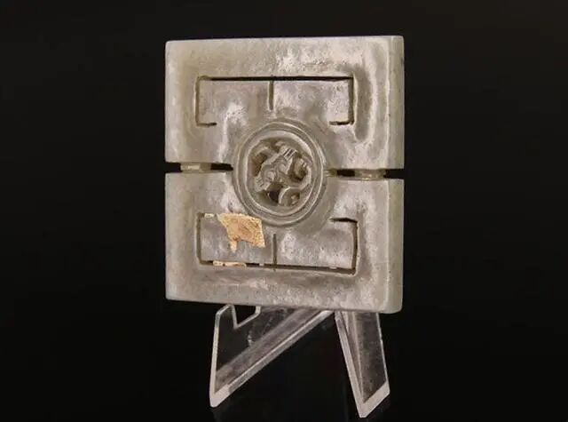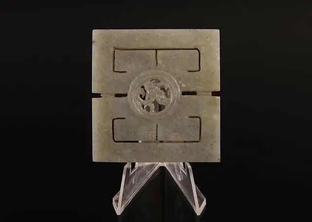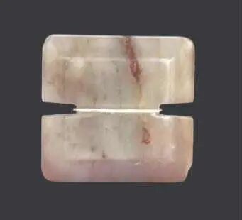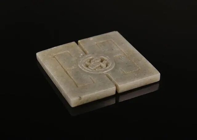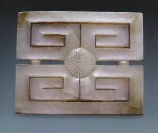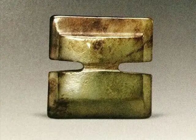 在琳琅满目的传世古玉中,有一种造型呈方形或长方形,两腰中部内琢凹槽,中间开线且有穿孔的牌形玉佩饰。