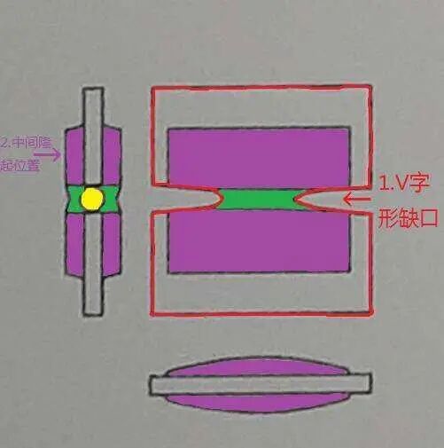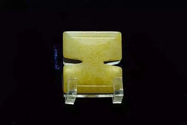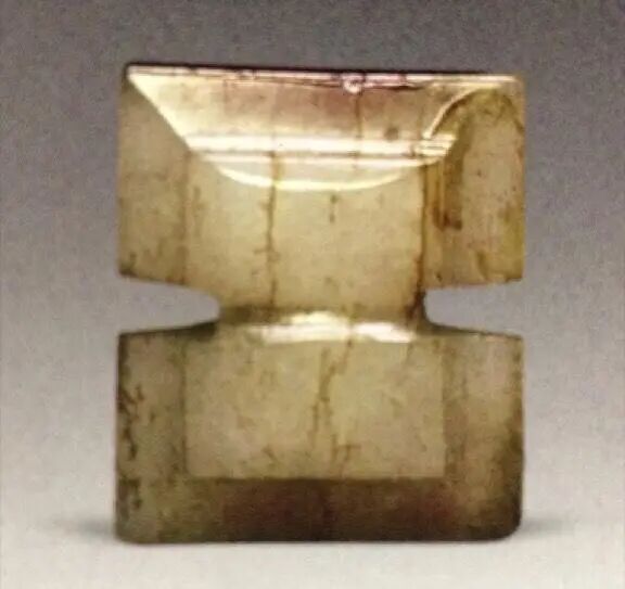 然后在玉牌左右两边切出两道“V”字形缺口凹槽,使玉牌形状看起来像"工"字,然后在凹槽底部位置穿孔,以便系佩。