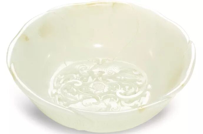 清乾隆 白玉蝴蝶紋葵花式盌 12.5 公分 估价: