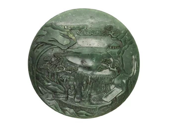 清嘉慶 碧玉高士賞遊圖圓插屏 19.2 公分 估价: