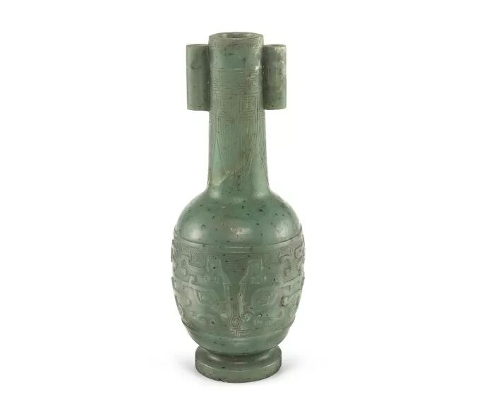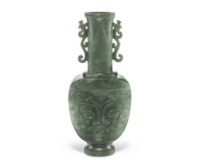 清乾隆 碧玉獸面紋鳳耳瓶 18.4 公分 估价: