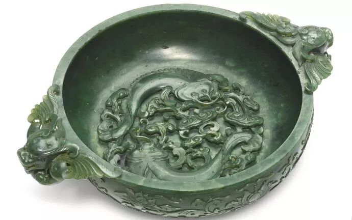 清乾隆 碧玉年年有餘紋龍耳洗 25 公分 估价:
