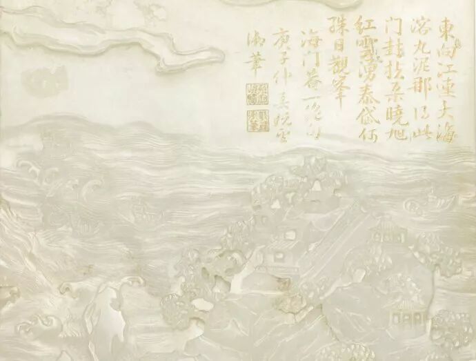 清乾隆庚子年(1780) 白玉題御詩海門菴插屏 配象牙座 20.8 公分
