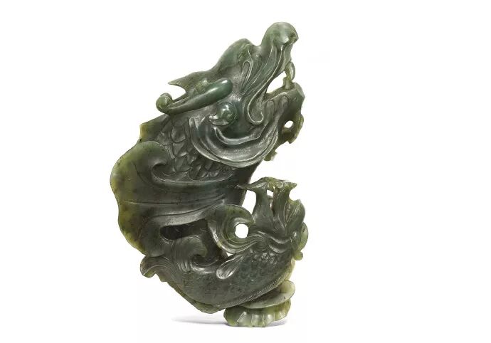 清十八/十九世紀 碧玉龍魚紋花插 16 公分 估价:10,000—15,000英镑