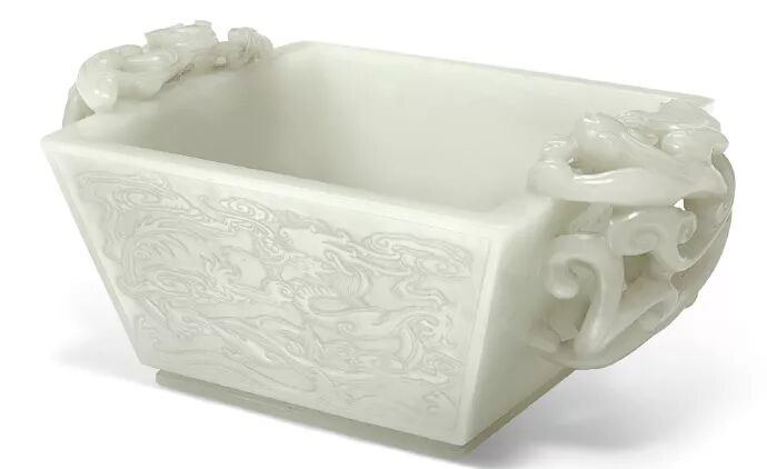 清乾隆 白玉穿雲游龍螭耳方斗 19.3 公分 估价:50,000—60,000英镑