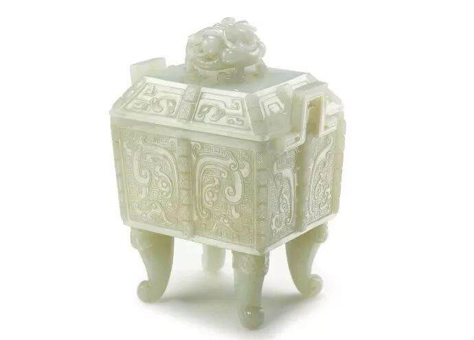 清乾隆 白玉獸面紋三足蓋爐 18.5 公分 估价:40,000—60,000英镑