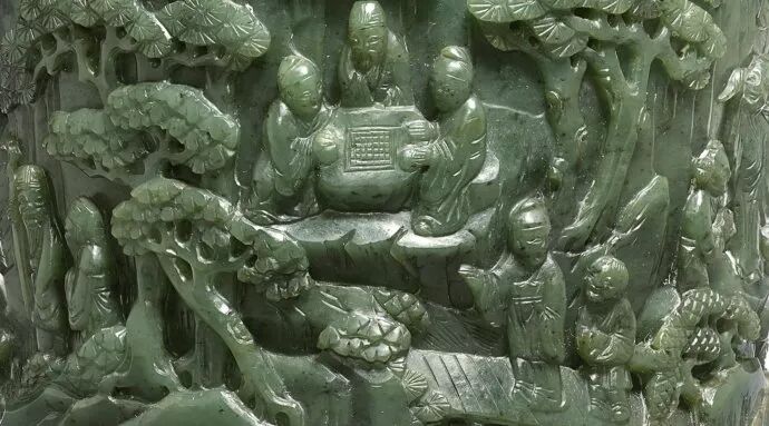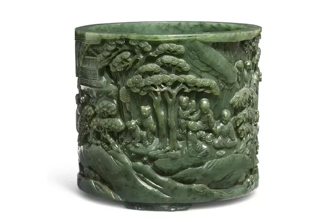 清乾隆 碧玉高士賞遊圖筆筒 13.6 公分 估价: