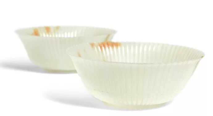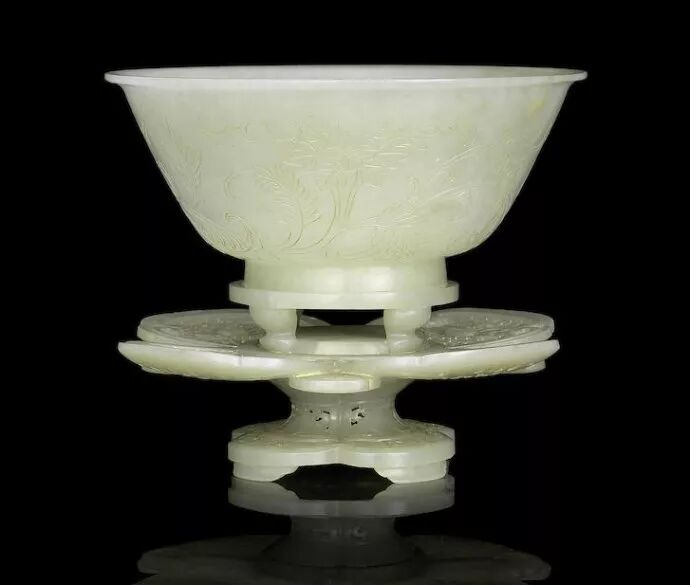 圓潤白玉雕琢,比例均稱完美,琢磨細緻,盌面潤澤,光可鑑人。乾隆一朝,御作坊多以小塊玉石製器,皇帝更常賦詩題詞,感嘆玉石稀罕。自西征準噶爾,平定于闐、葉爾羌(今新疆),其地所產碩大良玉,至此歲歲朝貢,源源不絕。
