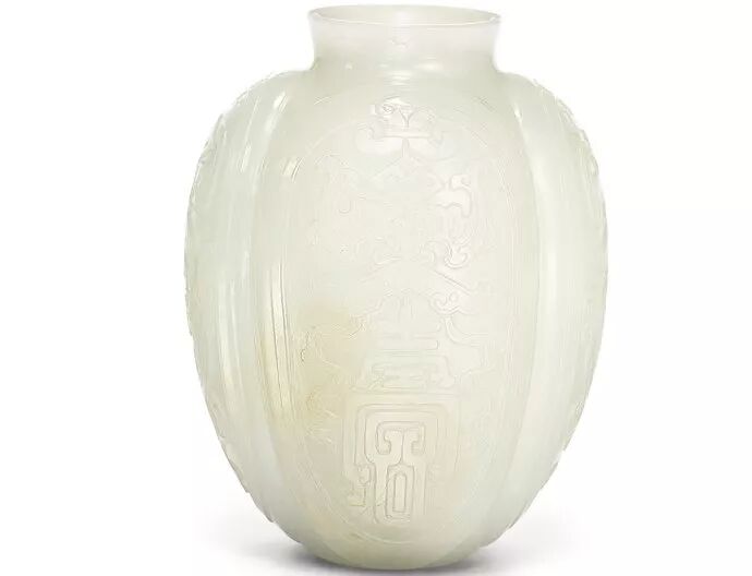 清乾隆 白玉福慶有餘紋瓜棱瓶 12 公分 估价: