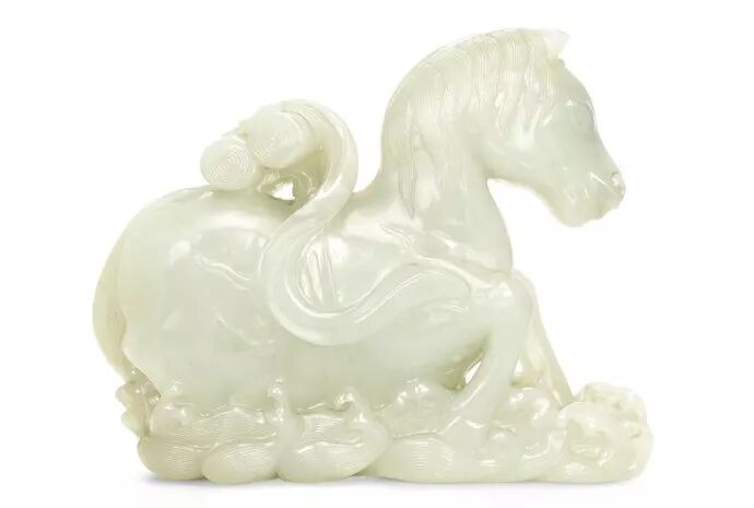 清十八/十九世紀 青白玉臥馬背書 11.5 公分 估价: