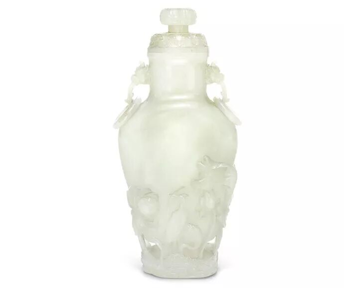 清十九世紀 白玉一路連科紋雙耳活環蓋瓶 23.8 公分 估价:40,000—60,000英镑