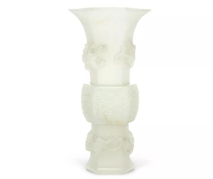 十八世紀,盛行以古青銅觚為雛本製作玉瓶,成品尺寸相異,造型不同。