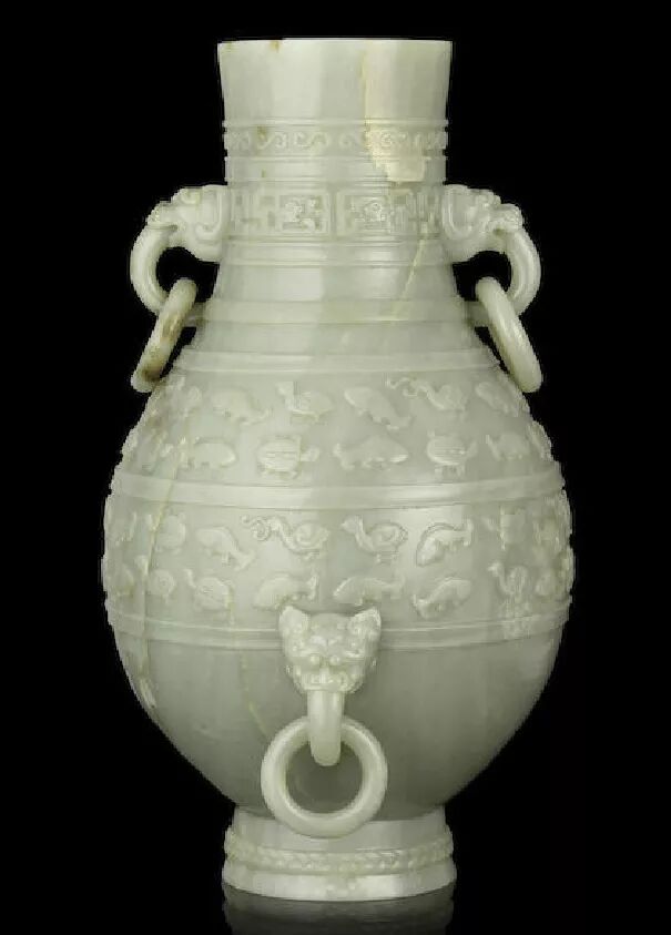 清乾隆 御制瑞兽鱼雁纹辅首衔环玉耳壶41.8厘米 19,160,000港币