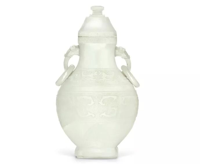 清十八/十九世紀 白玉獸面紋雙耳活環蓋瓶 22.5 公分 估价:
