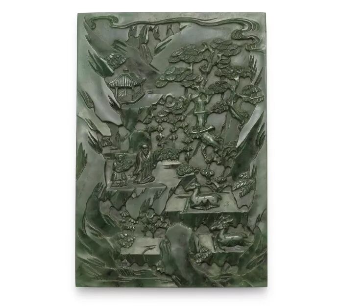 清嘉慶 碧玉高士賞遊圖山子 30.5 公分 估价:20,000—30,000英镑