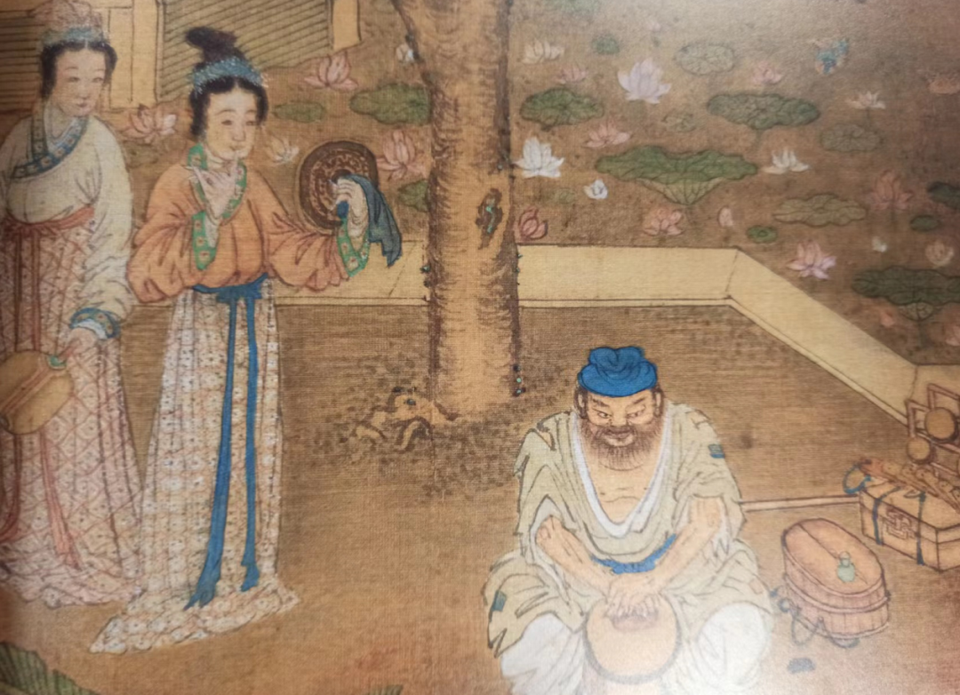 除了农村题材,市肆也是风俗画重点表达的内容。北宋时期,城市格局突破坊市的限制,市民经济得到充分发展。货郎,是在农村和城市沿街叫卖杂货、食品、小玩意儿的流动商贩。这幅《夏景货郎图轴》里,货架上的器皿、花木、水果都非常精美,条幅上写着“上林佳果玉壶冰水”,可知这位穿着华丽的货郎,买的是夏日冰镇饮料!画面里,一女子双手承盘,货郎正拿着壶准备倾倒冰水,女子身后两个贵妇正在窃窃私语,场景感十足。“百六十行,行行出状元。”古代还有很多神奇的行业、职业,今天几乎已经消失了。古人以铜为镜,铜镜用久了会氧化变黑,于是就出现了专门负责打磨铜镜的磨镜工匠。他们会提前用水银、锡粉调和成研磨粉,然后用来打磨镜面,使其恢复光洁。研磨粉有毒,是一项辛苦的工作。古代物资比较匮乏,瓷器稍有破损,锔好后仍然可以使用。于是,对应的锔缸工匠也就产生了。看手相,在古代又称“相手”,是指通过手掌纹路的形状、线条来判断个人的身体、运势。这个行当,现在还没失传!市民经济发展,带动了市民文化的兴盛。杂剧开始出现在城市的勾栏瓦肆之中,观看杂剧成为宋元时期人们喜闻乐见的娱乐方式。《卖眼药》又称为《眼药酸》,是一种杂剧剧目。故事大概是,卖眼药的因为言语不当,被买药的棍棒伺候,最后逃之夭夭。“酸”,是讽刺挖苦的意思。这幅画中,两位杂剧“演员”表情到位,相当“投入”。卖眼药身上的药代,画满了眼睛,视觉冲击力极强!可见古代的戏剧,已经开始注重服装、道具,对表演效果的塑造!唐玄宗李隆基酷爱斗鸡,经常在长安举行规模盛大的斗鸡比赛。这幅画描绘的就是李隆基出行斗鸡,他坐在马上,身后的侍从怀抱着鸡。前面有女官奏乐,右侧有官员进谏,形成鲜明的反差,实际上是对李隆基不务正业的讽刺。唐玄宗时期,西凉人进献鹌鹑,能够随着金鼓的节奏争斗,于是斗鹌鹑的游戏出现了。斗鹌鹑大多在秋末冬初进行,称为“冬兴”。这幅画表现的是明宣宗朱瞻基观看斗鹌鹑的场景。
