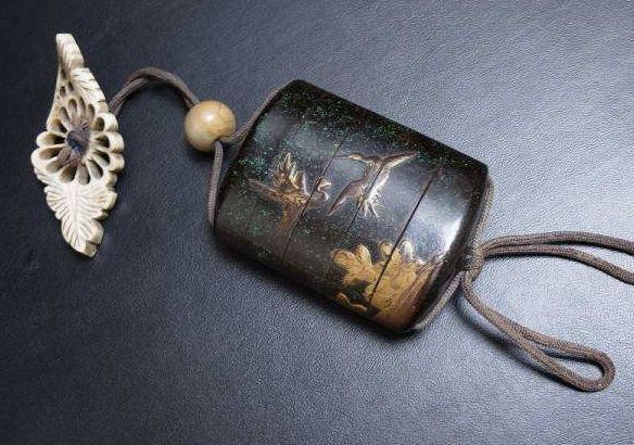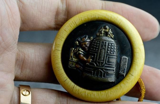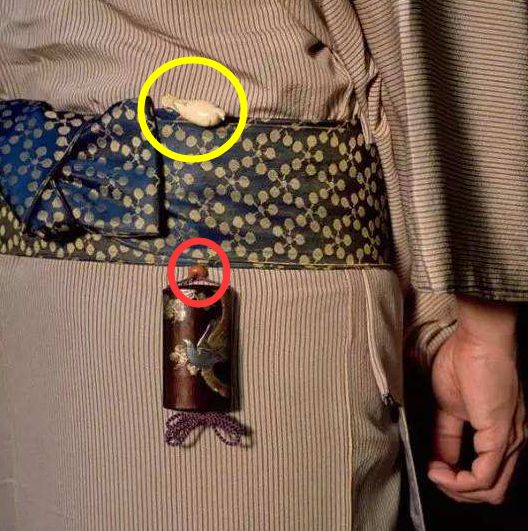 没错,“绪缔”就是日本印笼的组成部分之一。绪缔就是整套提物中不可或缺的一个装饰配件。因为古代日本人穿的和服最大的缺点就是没有兜,很不方便随身携带物品,因此需要在腰带上挂印笼烟包等来收纳药物、烟草及其它的物品。而绪缔的主要作用是束紧带子,防止印笼等物品的开关在走动的过程中不小心滑落打开,同时也能起到了一定装饰的作用。