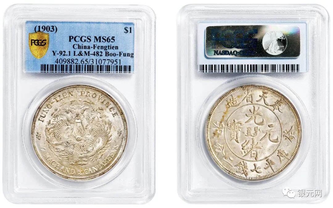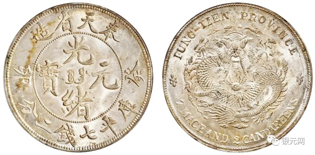 光绪二十九年(1903),奉天当局利用奉天机器局现有设备,同时向德国和美国添购造币机器,重建新厂,并成立奉天制造银元总局,开铸奉天省造癸卯光绪元宝纪年银币。此年份银币依中央满文不同,可分为“宝奉”“奉宝”二种版别,其中“宝奉”版的存世数量远少于“奉宝”版。据资深人士对2011-2021年海内外公开拍卖的数据统计,近十年来,“宝奉”版出现的比率大约是“奉宝”版的三分之一,其中品相能达到完全未使用状态者屈指可数。2012年秋季,在香港地区举办的一场钱币拍卖会中,一枚品相为UNC的“宝奉”版七钱二分银币,以11.8万美元(约合人民币80万元)成交;2021年北京诚轩秋季拍卖会,一枚PCGS评分MS61的“宝奉”版七钱二分银币,则拍出了235.75万元高价,足见“宝奉”版MS级佳品的高度稀缺。