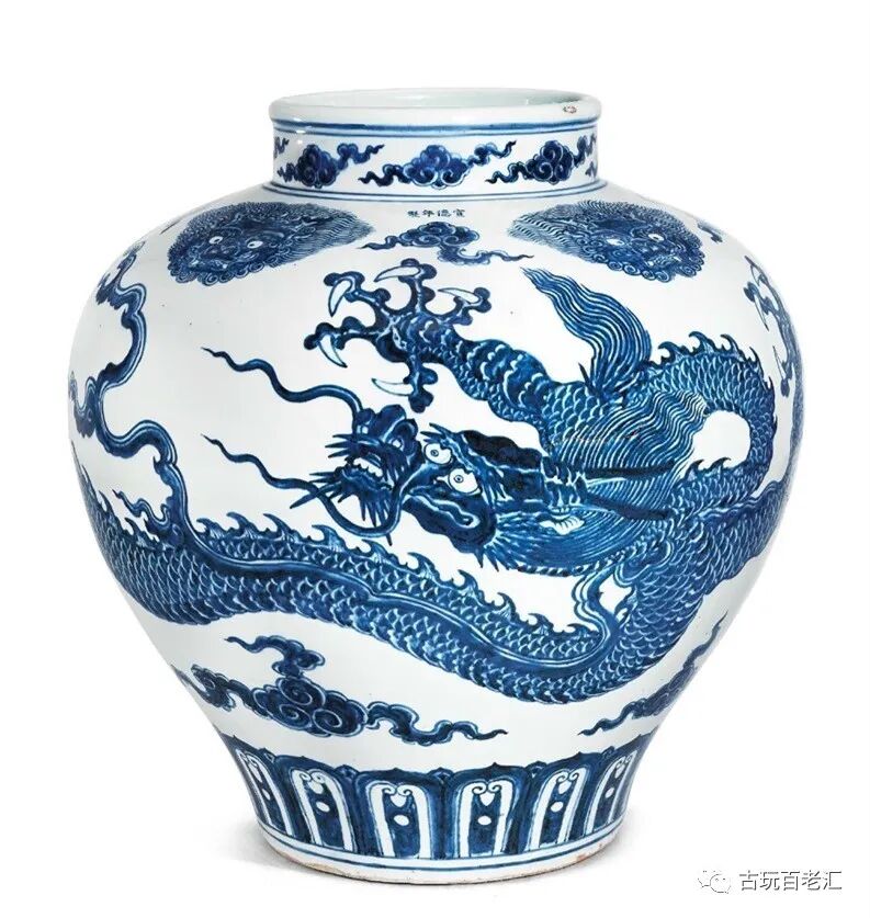 明宣德青花五爪云龙纹大罐,以2200万港元起拍,1.4亿港元落槌,2016年5月30日香港佳士得春拍