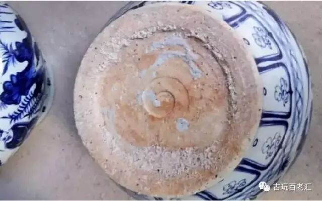 4、观察其粘沙现象,如明之以前的器物多有不同程度的粘沙现象,清官民之窑足内积釉处也有粘沙,而仿品这一点却极少做到(伪品也有少数粘沙,然不像真品那样显得老化干燥),因其烧造工艺高于古时,釉也施得不是那么厚,不会造成积釉,再加多为模注而过于规整等原因,使之极少有粘沙;