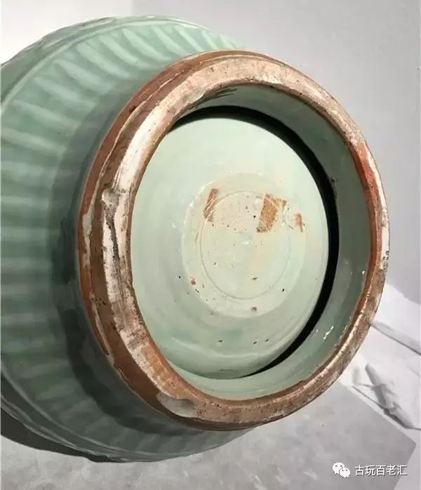 16、旧器无釉露胎的地方,呈干燥状胎釉形成一体的感觉。新器无釉露胎的地方呈“湿”状,胎釉形成二部份的视觉,即使经特别做旧处理过的器物,也无法呈现胎釉连成一体的视觉。
