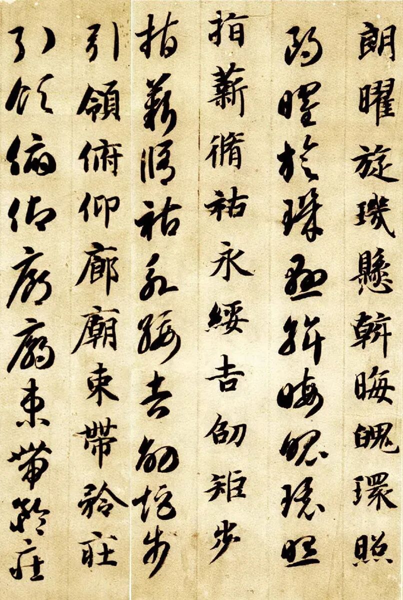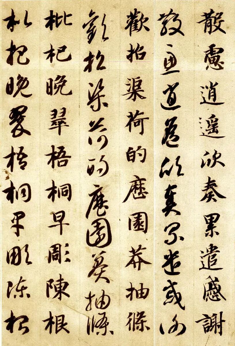 同时它的字势圆融,用笔清晰,结构稳定,再加上行书的笔意,章法自然,风格统一,是初学者绝佳的临摹作品。