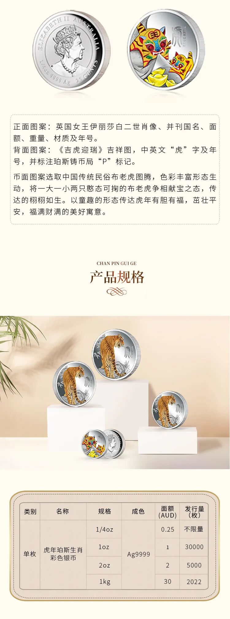 2022壬寅(虎)年珀斯生肖彩色银币