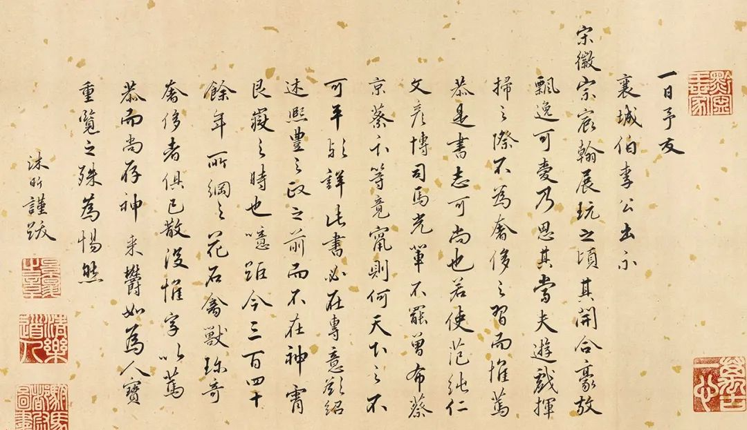 沐昕深受明成祖的重视,其书法行书跋元佚名宦迹图,现存于纳尔逊-阿特金斯艺术博物馆藏。这幅题跋婉丽飘逸,舒展大方,用笔灵巧,字字独立,章法自然,堪称佳作!