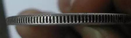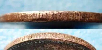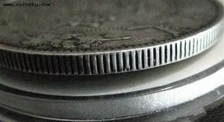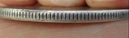 橄榄齿:由于造币厂在铸币之前对币的饼坯先行倒角,铸造后就会留下看似中间宽两头窄的效果,上下两齿看似两片嘴唇,有些人称之为“橄榄齿”,是一种象形的说法。大弧橄榄齿:是指机制币铸造后边齿中间宽两头窄的效果特别明显,弧度比较大,边齿比较深。