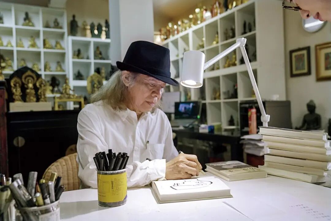 2021年,蔡志忠出版了自传、开了画展,今年,他继续画漫画、收佛像、打桥牌……他说自己应该会活到120岁。