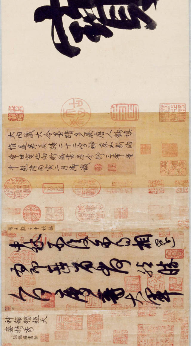 清乾隆皇帝誉此帖为“三大稀世珍宝”之一,并于卷前题“至宝”二字,并在每年的中秋节都要借着《中秋帖》来进行文艺活动和君臣互动。