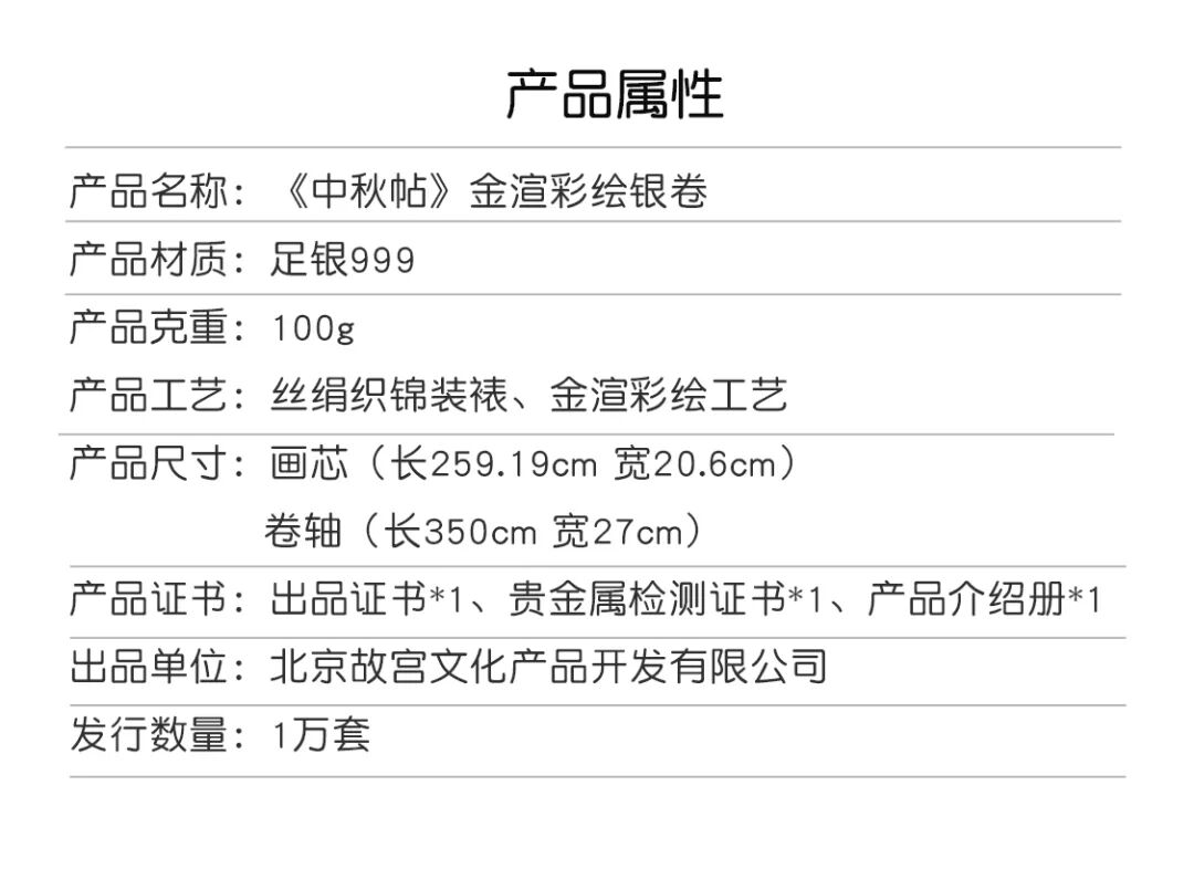而这套《中秋帖》金渲彩绘银卷便由北京故宫文化服务中心权威出品。