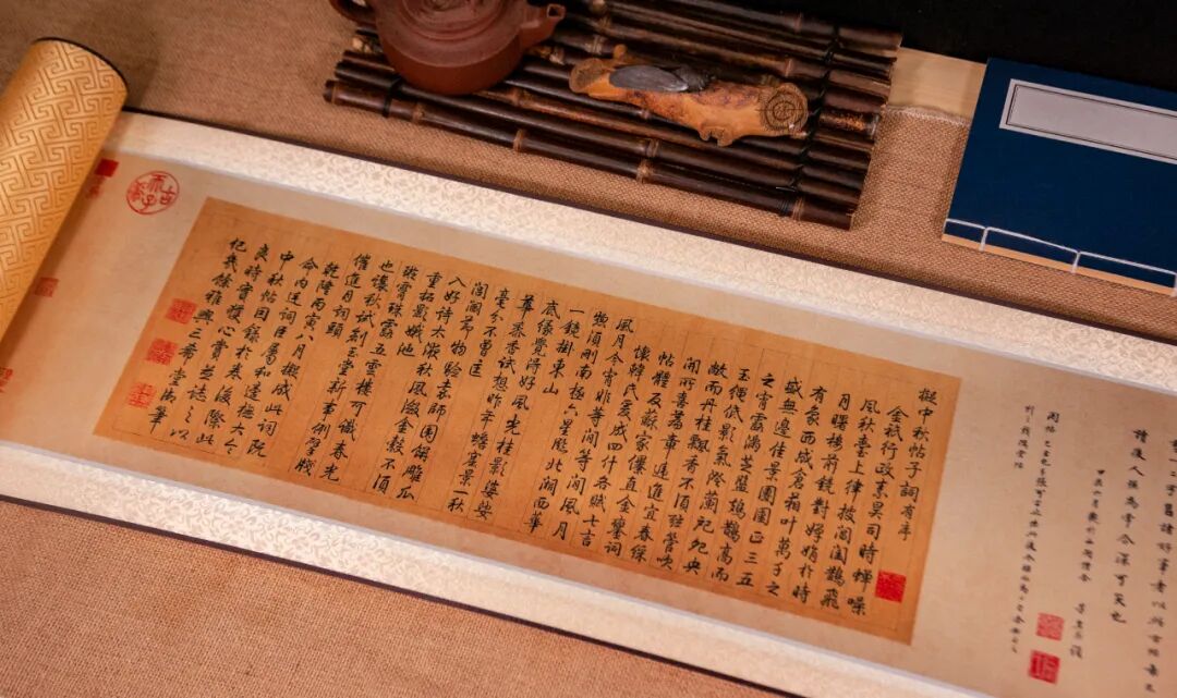 《中秋帖》金渲彩绘银卷本身就足够珍贵,再加上采用传统丝绸装裱、濒危金渲彩绘工艺打造!